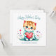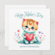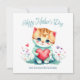 Det här söta och ljuva kortet till mors dag är den perfekta designen för din mamma på hennes speciella dag. Det har en fantastisk akvarell söt katt som håller ett rött hjärta omgivet av blommor och den livfulla typsnitts texten "Glad mors dag". Det är sött, ljust, elegant och unikt. Anpassa ditt hjärtliga meddelande på baksidan och låt mamma veta hur mycket du bryr dig.