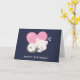 Födelsedag med en bra bild. En vit kattunge med en söt bild på hennes päls. Det går fredligt. Ett stort rosa hjärta bakom henne och några små stjärnor också. Mörk blått bakgrund.