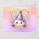 Fira din speciella dag med vårt söta Kawaii Katt Födelsedagskort! Bedårande katt som bär en festhatt bland konfetti på en pastelljus glitterbakgrund. Perfekt för kattälskare!