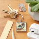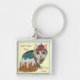 Söt kitten grått tabby slickande tass christmas fyrkantig silverfärgad nyckelring
