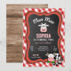 Överraska dina gäster med denna söta ko-tema födelsedagsfest inbjudan med söta små kor med modern typografi mot en röd rutig bakgrund. Lägg helt enkelt till dina evenemangsuppgifter i denna lättanvända mall för att göra den till en unik inbjudan. Vänd på kortet för att avslöja en rustik lada trästruktur på baksidan av kortet.