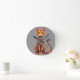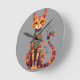 Söt konstnärlig katt med blomstergren rund klocka