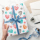 Söt korall röd rosa akvatblå hjärta konst mönster presentpapper