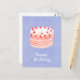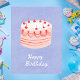 Fira speciella ögonblick med detta charmiga födelsedagskort med en fantasifull illustration av en klassisk lagkaka prydd med glada röda körsbär. Den känsliga rosa tårillustrationen är handritad med dekorativa rördetaljer, mot en lugnande pastellblå bakgrund som ger designen en drömlik kvalitet. Vitt kursivt skrivande önskar varmt "Grattis på födelsedagen" under tårtan och skapar en perfekt balans mellan nostalgisk charm och modern enkelhet. Detta vykort fångar glädjen och sötman i födelsedagsfirande med sin retroinspirerade bageristil och mjuka färgpalett.