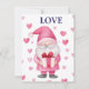 söt kort med en tecknad rosa tomte som är kär