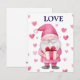 söt kort med en tecknad rosa tomte som är kär med ett hjärta för högtiden i februari på Alla hjärtans dag
