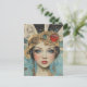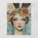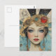 Söt kvinna mixed media collage vykort