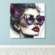 Söt Kvinnor i solglasögon och Lila Lipstick Canvastryck