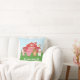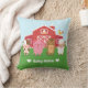 En söt illustration av gårdsdjur som inkluderar ko, gris, häst och lamm som håller varandra i händerna framför en lada där en tupp står på taket. Färgglad och bedårande för ett barnrum eller babysnurra.