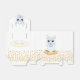 Söt lama dekorerad med peonior och guldconfetti på vit tacksamhetslåda. Vacker presentlåda för alla sorters fester och evenemang. Texten Tack kan anpassas.