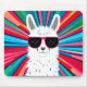 Söt lama som bär coola solglasögon med färgglad bakgrund.