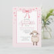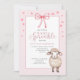 Söt Lamm Rosa Rosett Baby Sockerfest Shower Inbjudningar