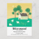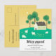Söt illustration av ett vitt hus på landsbygden, med massor av grönt gräs, träd och betande får. Anpassningsbar typografi i kol för att uppdatera nya adressuppgifter. Baksidan av vykortet innehåller ditt anpassade meddelande för familj och vänner.