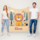Denna personliga fleece har ett charmigt, fantasifullt lejon med en leende, som tittar ut från en frodig grön skogsscen, som väcker fantasin och skapar en värld av under.