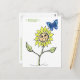 En söt teckning och konstverk av en solros och fjäril som ler, tryckt på ett vykort.
