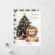 Charmfull skogsinsprirerad konst med en söt baby lejon bredvid en vacker dekorerad julgran ger varm säsongs charm till detta platta julkort. De mjuka färgerna och den känsliga illustrationsstilen gör detta väggkort perfekt för familjefirande eller festliga postutskick. Anpassa hälsningen, året och namnen för att skapa en hjärtlig julskatt. Ett underbart val för att sprida glädje denna högtidssäsong.