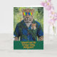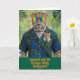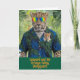 Ett sött roligt katt gratulationskort med en leopard som bär en hawaiiskörtel och solglasögon med en orange tabby i fickan.