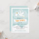 En vacker könsneutral stork-tema bebis shower inbjudan som har en vacker tealblå, orange och vit färgskala. En glad stork glider förbi och bär en ny liten knippe glädje medan han flyger mot en mjuk akvablå himmel som är prickad med ludna moln. En traditionell symbol ges en uppdaterad look i denna genomgående moderna tolkning av temat med originell illustration och trendig, lekfull typografi.