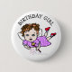 Bedårande "Födelsedagsflicka"-knapp med lila och blond ängsborn. Whimsisk folkkonst stil födelsedagsknapp.