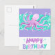 Söt lila bläckfisk ljus färgglad födelsedag vykort