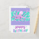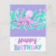 En söt lila bläckfisk födelsedags vykort.