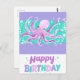 En söt lila bläckfisk grattis på födelsedagen vykort.