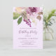 Den här vackra födelsedagsfest inbjudan har en lila blommigt bukett med gott om grönt löv på mjuk lavender-bakgrund. Lila handskrivet skript och modern text kombineras för ett enkelt utseende och elegant.