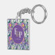Söt Lila Blue Blommigts Monogram Keychain . Utformningen har lila-blå blommigtar i lila bakgrund. Dessa vackra nyckelkedjor kan anpassas genom att man ändrar monogrammet och namn. Om du vill ha fler anpassningar kan du kontakta mig på mypaperlove2021@gmail.com