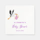 För en elegant och giftig babydusch. En chic vit bakgrund, lila brev. Med en söt flygstork som håller en flicka. Anpassa och lägga till namn i mamma till att bli medlem. Texten Baby Shower är skriven med ett modernt skript och ett handskript i trendiget stil. Enkel, minimalistisk och snyggt!