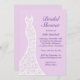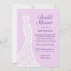 En söt snöre bröllop-klänning accentuerar detta inbjudningskort för möhippan på en mjuk, lila bakgrund. Denna inbjudan visas på den grundläggande pappra, men jag rekommenderar vikten och struktur på den linne som är papper.