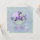 Vacker lila och ljusgrön baby shower-inbjudan. Denna bedårande lila och gröna baby shower-inbjudan har en blomster- och bandprydd babyvagn med en söt liten flicka inuti. Du kan enkelt anpassa denna söta lila och gröna baby shower-inbjudan genom att lägga till dina evenemangsuppgifter, typsnitt, teckenstorlek och färg samt formulering.