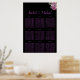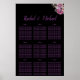 Ett vackert sittande diagram, det finns en svart bakgrund med vackert teckensnitt och blommigt i lilan. I mitten finns parets namn följt av parets namn elegant skriven i lila kursivt brev. Under finns mallar för infogning av gäster namn på det tilldelade borden. Köp hela samlingen för matchande artiklar.