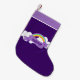 Vackra lila julstrumpor för ett barn eller en viskös vuxen som har en söt, rolig regnbåge med roligt vita moln på en söt violett bakgrund. Anpassa med ditt barns namn för en lycklig-gåva.