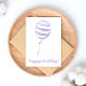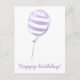 NyParkLane - Söt födelsedagskort för barn , med en söt lila randig ballong i akvarell. Lägg enkelt till ditt barns namn efter 'Grattis på födelsedagen' för en personlig design, och lägg till ett personligt meddelande på baksidan.