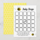 De här söta, lilla honungsbikorten är perfekt för alla som har en babydusch i år. Utformningen har söta honungsbin med bakgrunden till honungskakan i gulten och är enkel att anpassa mallformuleringen. Ta bara med de här bingokorten när du skickar ut dina matchande babyduschinbjudningar. Dina gäster kan sedan fylla varje ruta med alla presenter som de tänka baby får vid duschen, fem i vilken riktning som helst vinner ett pris! Matchande objekt finns i samlingen.