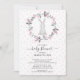 En bra inbjudan till babydusch med en liten kanin inramad med en ömtålig rosa blomkrans. Baksidan av inbjudan har en samordning tillbaka för en speciell beröring i extra.