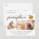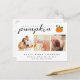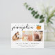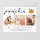 Det här söta bebis tillkännagivandet är perfekt för att presentera din lilla höst / höst-bebis! Du kan också skicka det som ett tackkort för Thanksgiving-helgen och bebis duschtack. Den enkla men stilrena designen har tre av dina favoritfamiljefoton och en blandning av modern klassisk typografi och handskriven text. Det finns också en söt pumpa-bild som följer med texten.