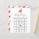 De här bingokorten är perfekt för alla som har en babydusch i år. Utformningen har en söt liten vattenfärgspersika och är enkel att anpassa mallformuleringar. Ta bara med de här bingokorten när du skickar ut dina matchande babyduschinbjudningar. Dina gäster kan sedan fylla ut varje ruta med alla presenter som de tänka den blivande bruden kommer att få vid duschen, fem i vilken riktning som helst vinner ett pris!