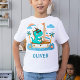 Personlig lille Trex-dinosaurie segelbåtskapten t-shirt. Tänk dig en söt dinosauriekapten ombord på en charmig segelbåt. Denna fängslande design blandar söthet med äventyr och semester, perfekt för att inspirera till fantasifull lek.