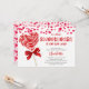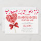 Liten sötnos flickor baby shower-inbjudan med en hjärtformad lollipop och en konfettigräns. Vänd vår söta inbjudan för att se en matchande hjärtmönster på baksidan för en extra speciell touch.