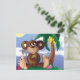 Söt liten apa som sitter bredvid bananträdet vykort