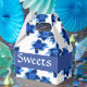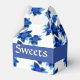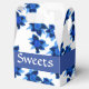 Söt låda för snyggtens designer, med en blå blomstrande utformning. Den vita bakgrunden kan ändras till valfritt Färg. Texten kan vara en personlig till kostym som ett klassbröllop eller söt för en bakbutik, en bondemarknad. Texten kan också tas bort.