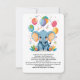Fira din lilla en med denna söta baby shower-inbjudan som visar en glad blå elefantbaby omgiven av färgglada ballonger och konfetti. Perfekt för en könsneutral, djungel- eller safari-inspirerad baby shower! Om du behöver någon annan matchande produkt eller anpassning, vänligen skicka ett meddelande via Zazzle.