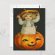 Söt liten flicka som ler Jack O' Lantern-pumpa Vykort