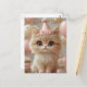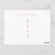 Bedårande orange randig kattunge som bär en rosa födelsedagshatt med rosa rosor och söta små tofflor. Det finns födelsedagsballonger och rosa tårta i bakgrunden. Baksidan har texten "Grattis på födelsedagen" med rosa ballonger som skiljelinje.