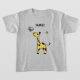 T-Shirt med söt liten giraffe i gult-orange med en fågel och ett bi. Du kan anpassa namn, teckensnitt, storlek text och placering. Texten kan redigeras helt. Du kan också ändra bildens storlek.