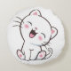 Söt liten katt på vit rund kudde.