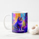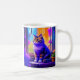 AI-katt i en abstrakt akvarellstil som sitter på en fönsterbräda och tittar ut. Vacker konstnärlig färg i rosa, lila, blå och gul.