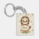 Denna bedårande personliga nyckelring har en söt liten fantasifull lejon som håller en skylt med din lilla enes namn.