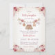 Gör dig redo att fira den kommande ankomsten av din lilla pumpa med vår söta lilla pumpa höst-födelsedagsfest-inbjudan. Denna charmiga inbjudan visar vackra rosa, krämfärgade och beige blommor, tillsammans med barnkläder som hänger på en tvättlina och pumpor. Den fångar essensen av hösten samtidigt som den förmedlar glädjen över att välkomna en ny bebis. Denna inbjudan är det perfekta sättet att sätta tonen för din hösttema-födelsedagsfest och finns tillgänglig i flera färger för att passa dina önskemål. Anpassning är enkel!